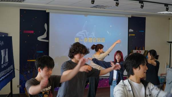上午課程從運動學程主任呂潔如「聽,身體在說話」覺察體驗開始(照片來源:運動學程)